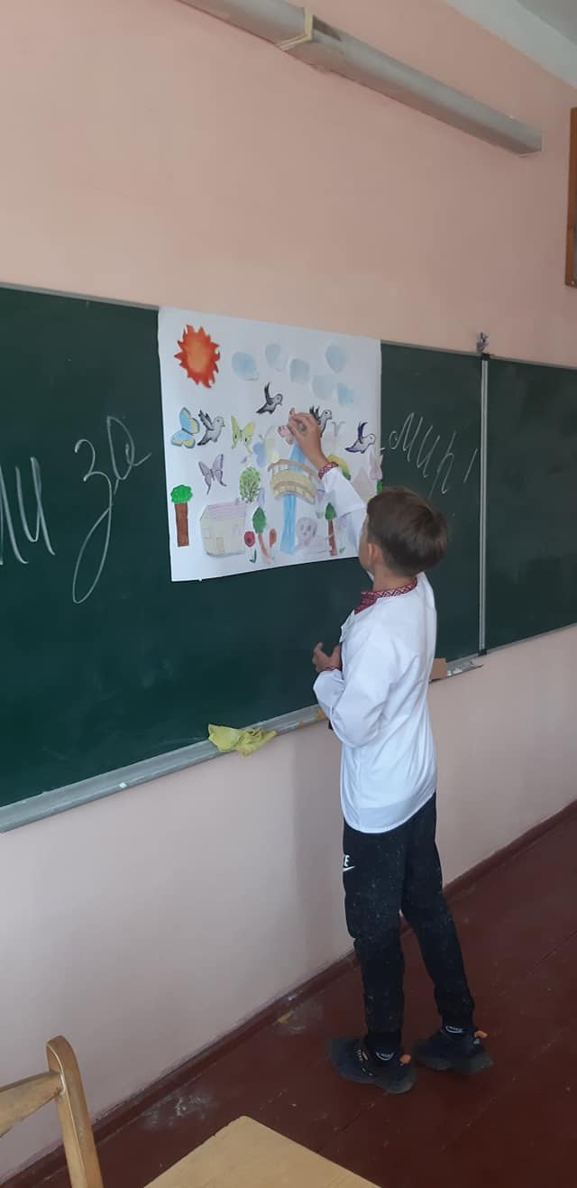 Діти вирізали своїх голубів, як символ Миру, та створили плакат "Моя мирна країна".